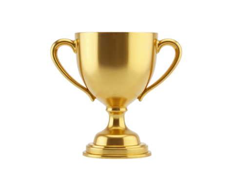 Golden trophy cup with handles on transparent background