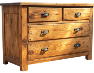 Modern wooden dresser isolated on transparent background in high resolution PNG format, ideal for digital furniture cutouts, interior design mockups, and stylish bedroom decor visualizations