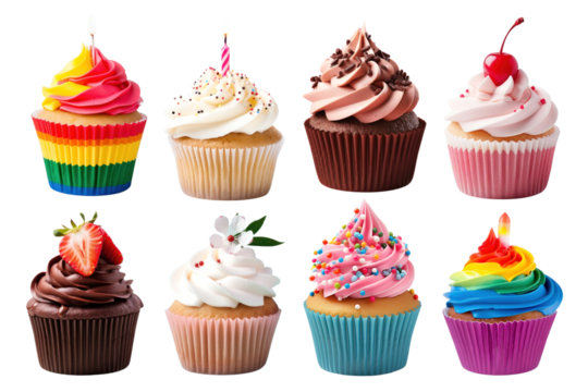Cupcakes isolated PNG. Cupcakes Png. Cupcake with white icing and sprinkles. Cupcake with strawberry icing. Strawberry Cupcake PNG Vanilla cupcake PNG
