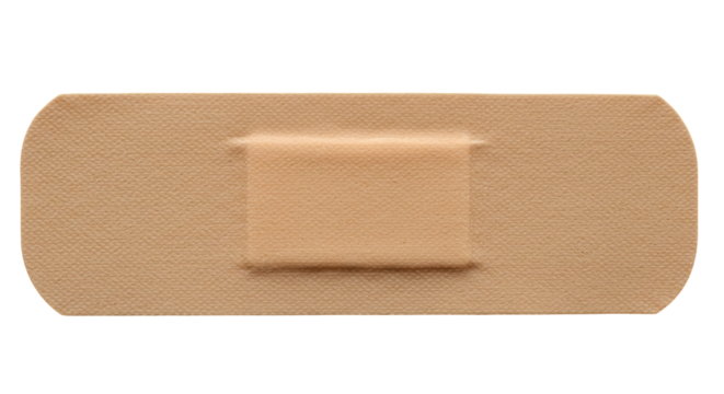 Adhesive bandage PNG isolated on transparent background, first aid plaster for wound care and medical treatment, skin tone fabric