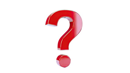 3D Red Question Mark with Gold Trim on White Background