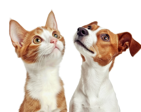 Isolated Kitten and Puppy Looking Up