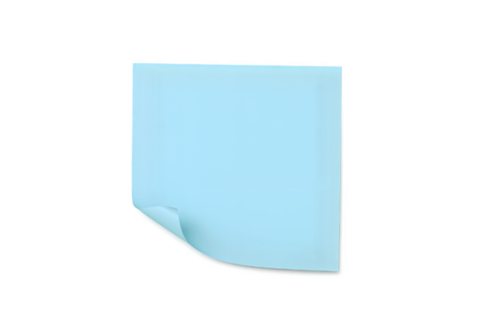 Blue sticky note blank paper memo with curled corner on transparent background for message or reminder