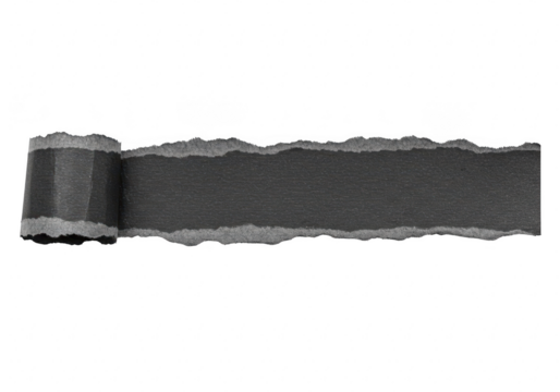A strip of torn black paper with a curled edge on the left, isolated on a transparent background