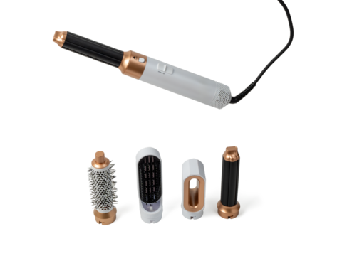 Hair straightener, hair dryer, hot comb set for wet and dry work, professional hair curling iron, hair styling tool, hair dryer. Set of hot combs close-up on a transparent background PNG.