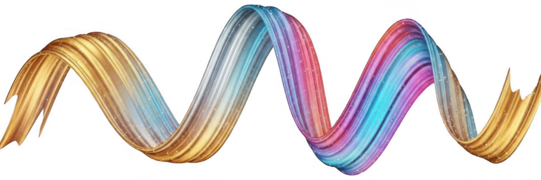 Golden ribbon curl with elegant metallic sheen on transparent background