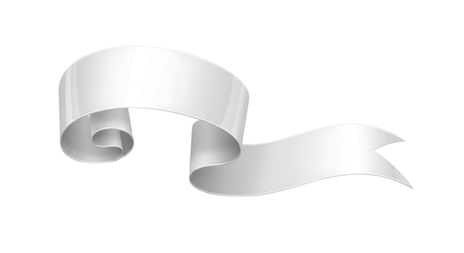 White Glossy Curled Ribbon Banner Element Isolated Against Transparent Background