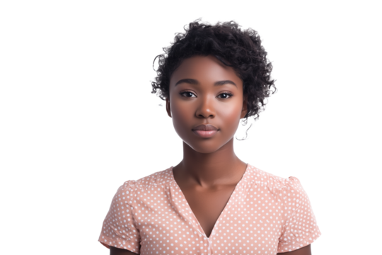 Studio portrait of Handsome African-American man with clean healthy skin and happy smile isolated on transparent png background.
