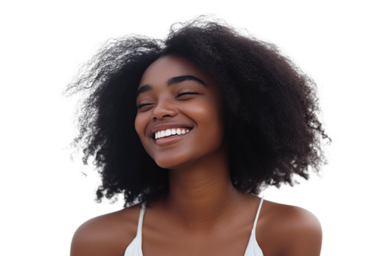 Curly-haired woman with a friendly, confident smile against against transparent background