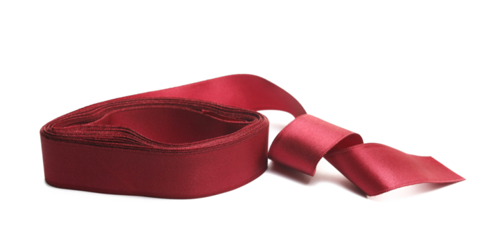 Red ribbon roll curly isolated on white, clipping path