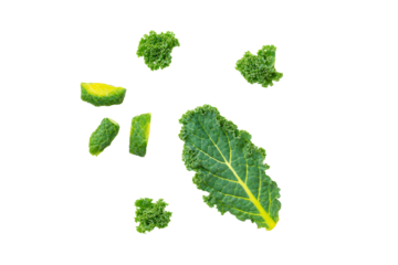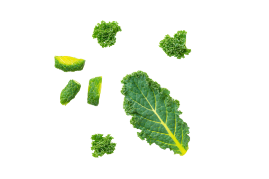 Kale whole curly bunch centred overhead studio flatlay isolated on transparent background
