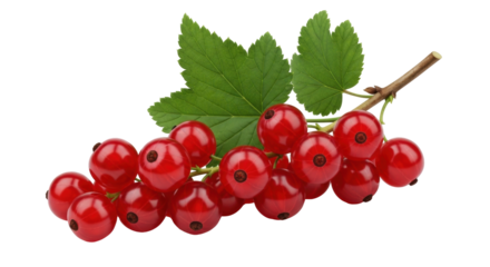 Fresh red currant clusters on branches with green leaves, isolated on transparent background. Perfect for culinary and botanical use.