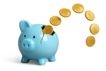 Isolated Broken Piggy Bank with Scattered Gold Coins
