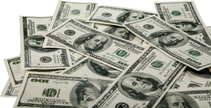 American hundred dollar currency bills fan shape isolated transparent background photo PNG file