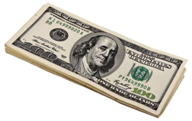 A thick stack of US hundred-dollar bills, with an opaque background, angled for visibility