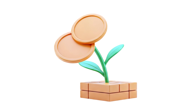 Photo of a single gold coin with the indian rupee symbol, isolated on transparent background, representing financial value and investment