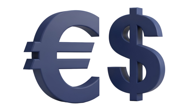 3D Rendered Euro and Lira Exchange with Blue Circular Symbols and Arrows on Isolated Transparent Background