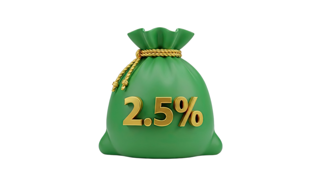 Four stacks of gold coins with red percentage signs isolated on transparent background
