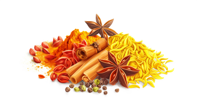 Turmeric spice mound used in culinary recipes golden milk healing drinks and natural food dye isolated on transparent background