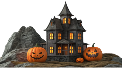 Haunted Halloween Night with Glowing Pumpkins and Spooky House