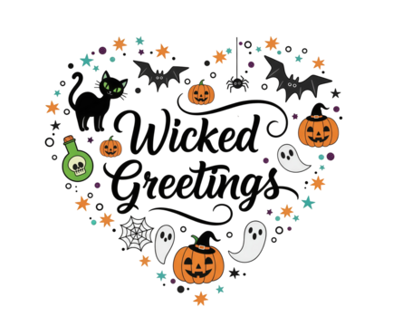 Wicked Greetings Heart Shape Halloween Graphic with Black Cat and Pumpkins