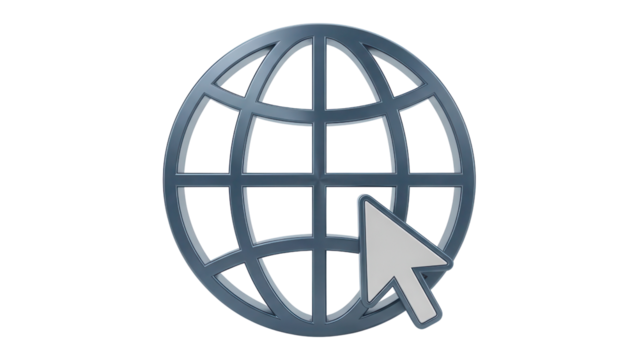 Blue gray internet globe icon with clicking mouse cursor isolated PNG with Transparent Background