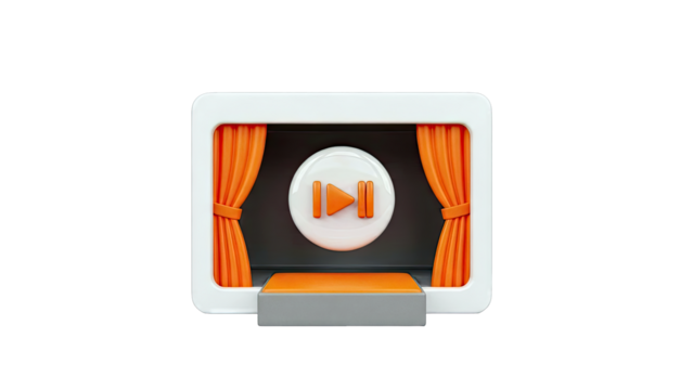 3D Play Button Icon on Stage with Curtains