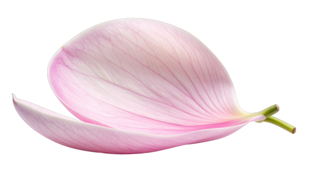 Delicate, pink petal, showing veining and curvature against a transparent background