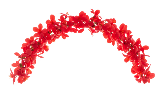 Vibrant red floral archway crafted from delicate blossoms, evoking a sense of natural beauty and celebratory decor