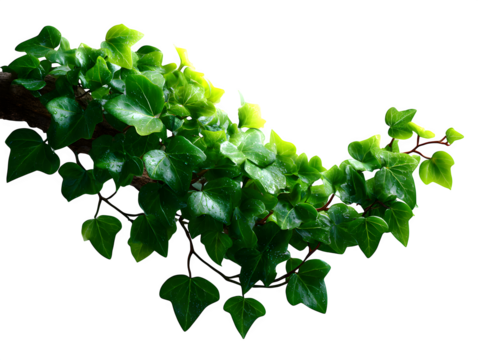 Curved ivy branch with dense small heart-shaped leaves flowing from left to right, styled naturally on white background, isolated to transparent background