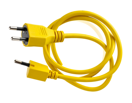 Straight-On EV Charger Plug with Curved Cable, Centered Front View, Isolated on Transparent Background - EV Charging Plug with Coiled Cable, Angled Side View, Floating Composition, Isolated PNG