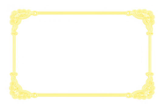 Golden ornate frame with decorative borders, elegant vintage style element for invitations and certificates, transparent background