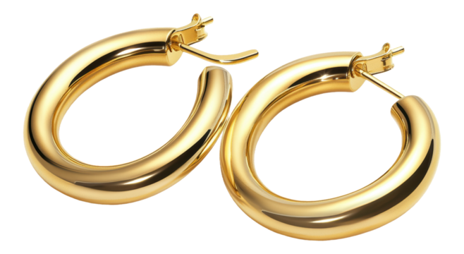 Elegant gold hoop earrings for showcasing jewelry design and craftsmanship, cut out - stock png.