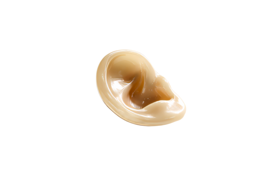 Gold stud earrings and smile-shaped bars forming a happy face emoticon, isolated.