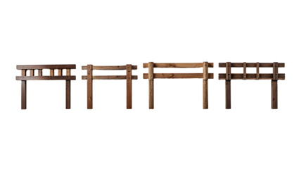 Curved road with wooden fence and colorful flowers isolated on transparent background