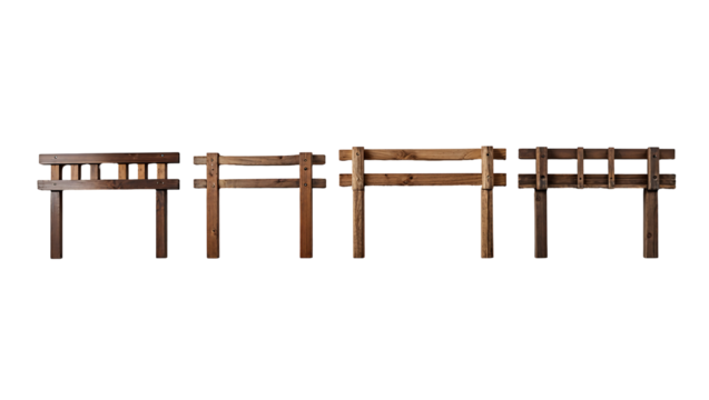 Stylish wooden garden bridges with top-down view, architectural renderings of curved outdoor walkways, perfect for elegant and rustic garden settings