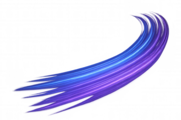 Blue and purple light streaks forming curved lines, an abstract energy movement concept having a transparent background