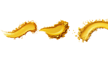 Two golden circular bead arrangements forming eyes and a curved row of golden cylindrical objects forming a smile isolated on transparent background