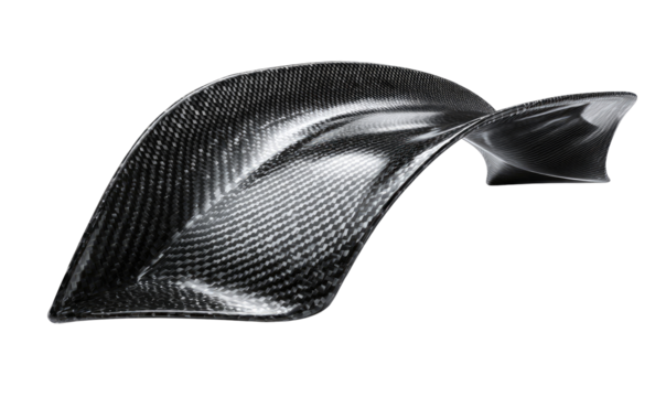 A 3D rendered, abstract, flowing wave design in shades of gray on a rectangular panel