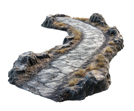 Scenic curved pathway through rocky terrain landscape natural isolated on transparent background