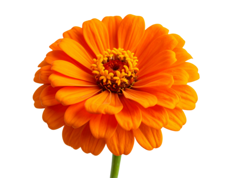 Single Orange Zinnia Blossom Angled from the Side with Curved Stem, Natural Elegance, isolated PNG