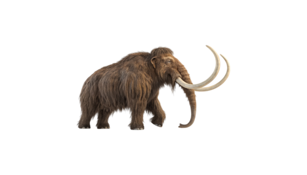 Woolly mammoth with curved tusks isolated on a transparent background prehistoric animal