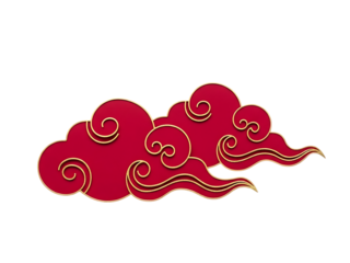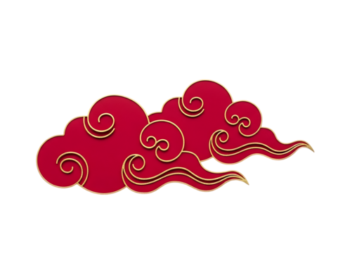 Whimsical flat design cloud with decorative swirls on transparent background