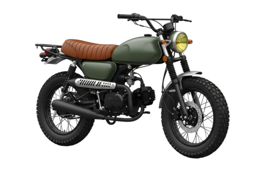 Custom Motorcycles: Custom-designed motorcycles with unique frames, sleek finishes, and high-performance features, isolated on a Transparent background, PNG file.
