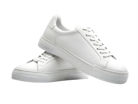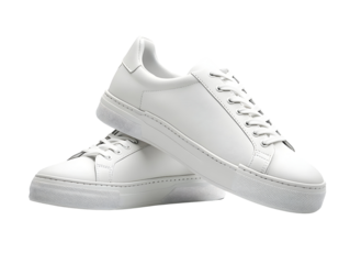 Stylish white sneakers on a white background for fashionable footwear promotion.