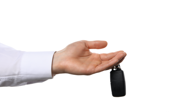 PNG,Hand with car key, isolated on white background