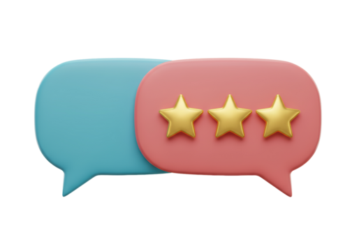 Abstract graphic with speech bubble, stars, and social media icons