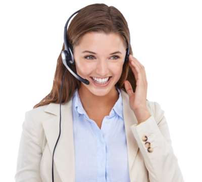 Transparent background friendly female call center agent smiling