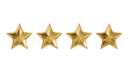 Four gleaming golden stars isolated on a pristine white background, representing top-tier quality, customer satisfaction, achievement, and celebratory recognition