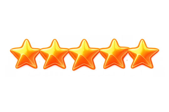 Five gold stars ranking for quality product feedback, excellent customer service, and top rating transparent background